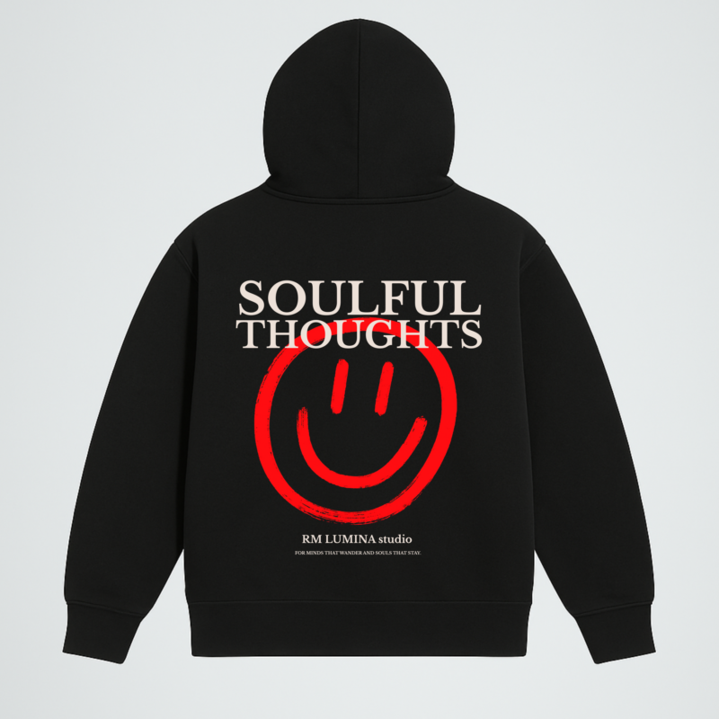 Soulful Thoughts Black Hoodie – Minimal Streetwear with Bold Graphic | RM Lumina
