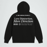 Be the first to review ““Less Distraction, More Direction” Minimalist Black Hoodie – RM Lumina”
