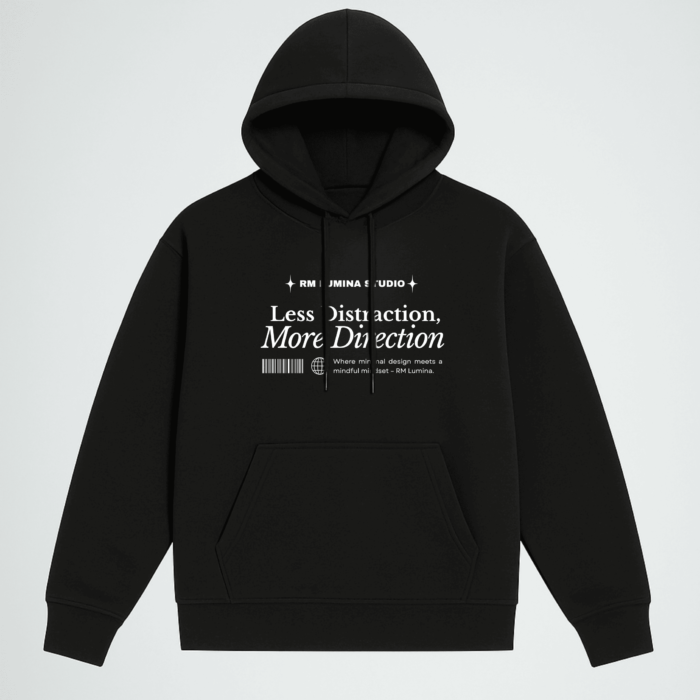 Be the first to review ““Less Distraction, More Direction” Minimalist Black Hoodie – RM Lumina”